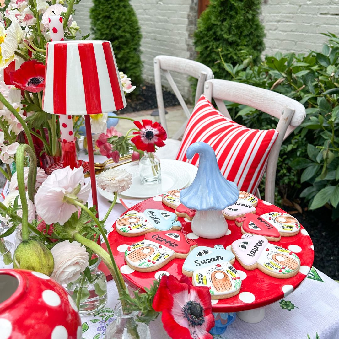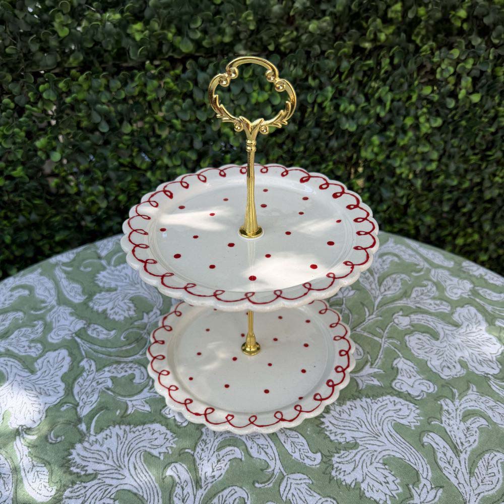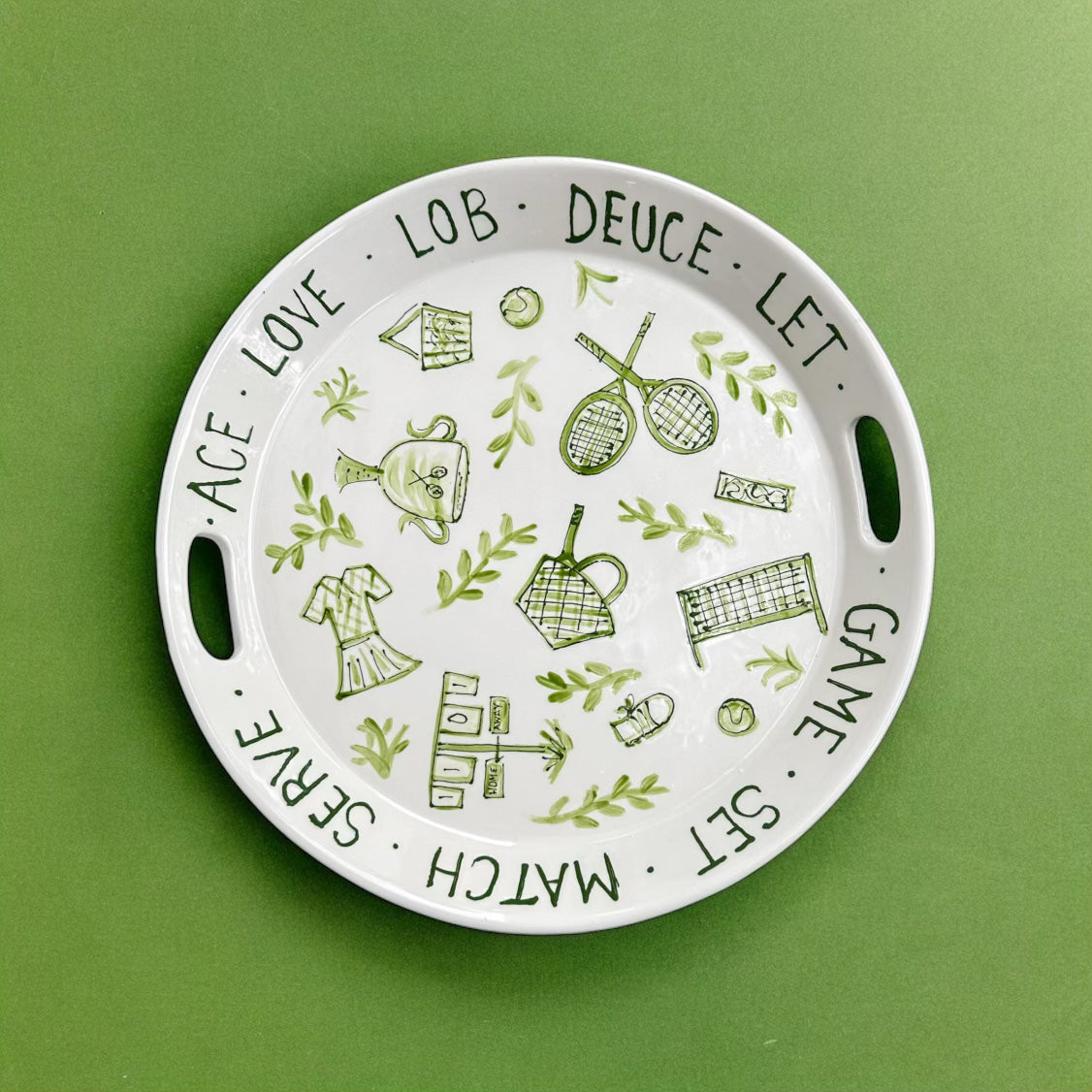 Colorful serving pieces painted with classic gingham and our signature floral pattern.