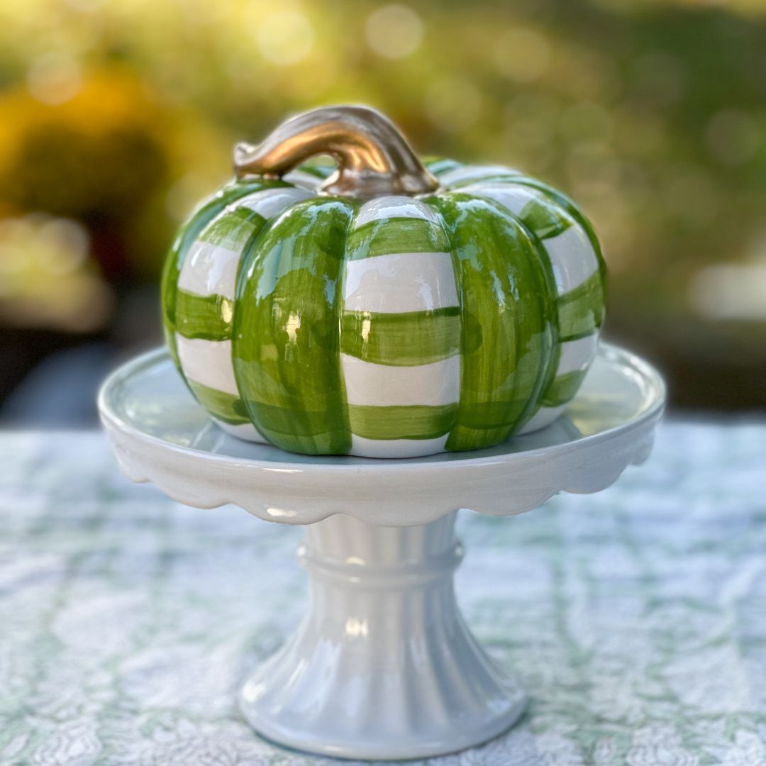 Squatty Grass Green and White Gingham Ceramic Pumpkin