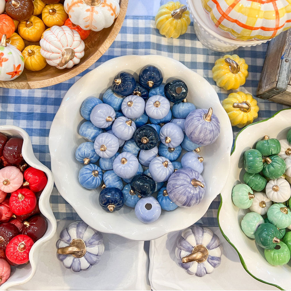 Choose 3 to make your own set! These tiny pumpkins are perfect to decorate this fall! Add a few to a bowl, or add them in front of your fall holiday village homes for a perfect touch.