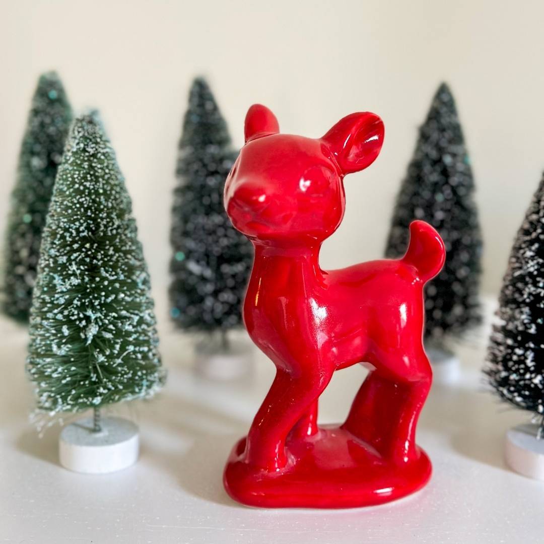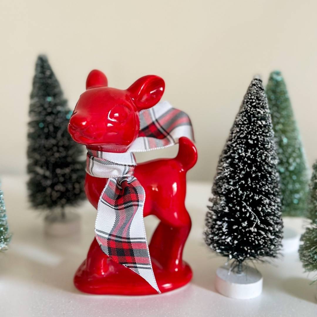 Spread the spirit of the season by decorating your home with this charming and festive red reindeer statue. It's a lovely way to add some holiday joy to any room!