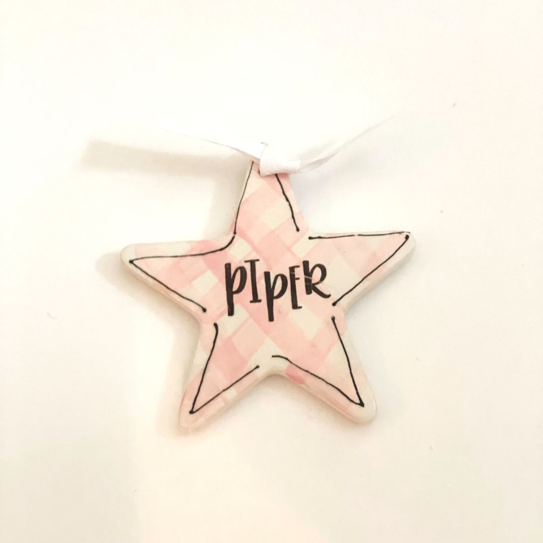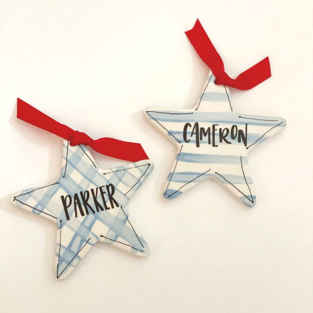 These gingham star ornaments are sure to be a hit this year! Choose from pink, blue or green and add a name to personalize it. These would also be great to add as a gift tag to top off that perfect present!