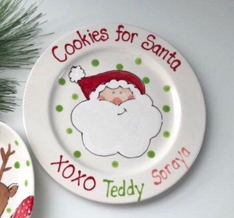 Make your kids' Christmas one to remember. This custom, hand painted, personalized, Santa plate is a 10" rim plate. Perfect to use as decoration or as a cookie plate.