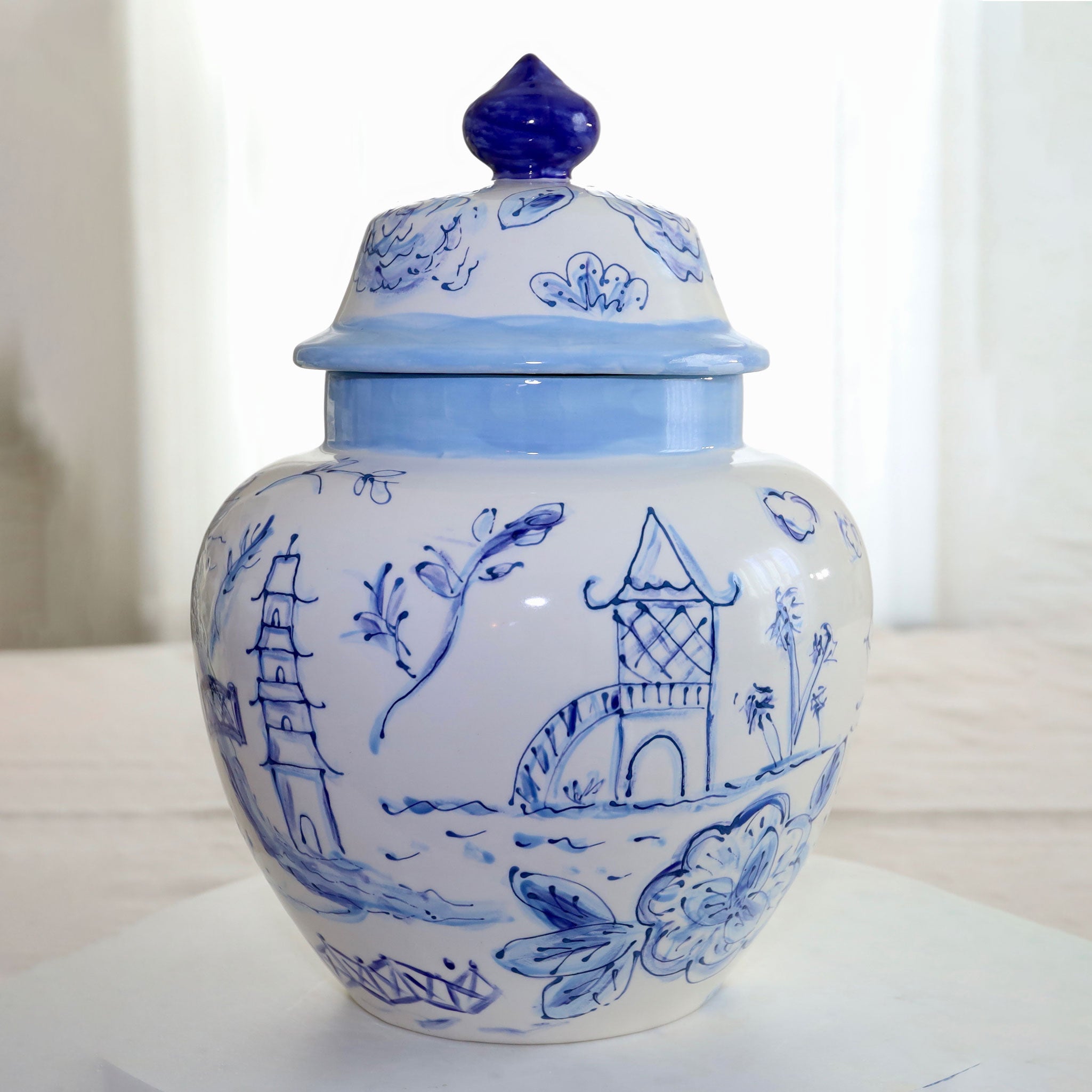 Make a statement with the Emma ginger jar, whether it's on its own or paired with a set of ginger jars! Hand-painted in a pagoda, gingham, or floral pattern for a touch of charm.