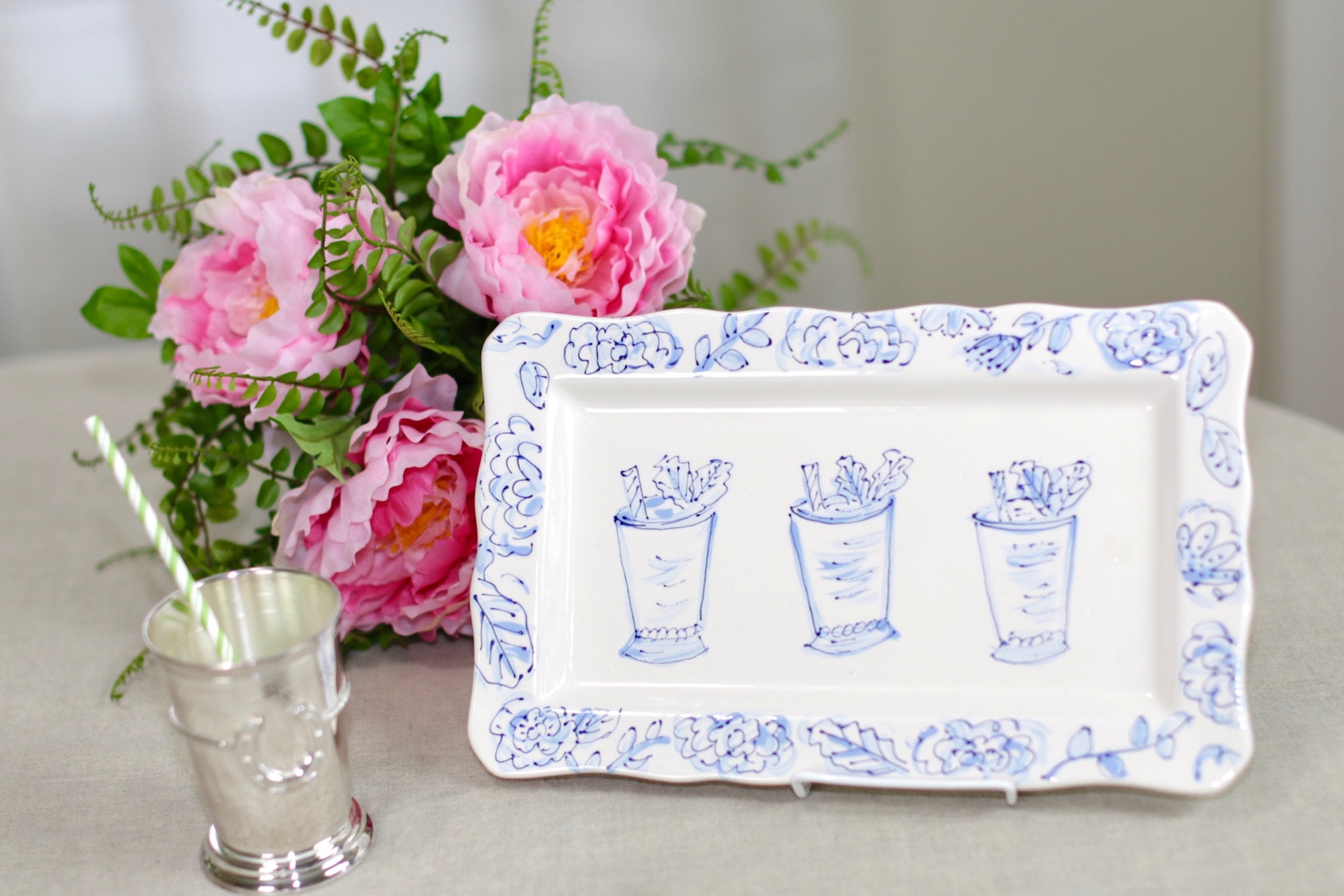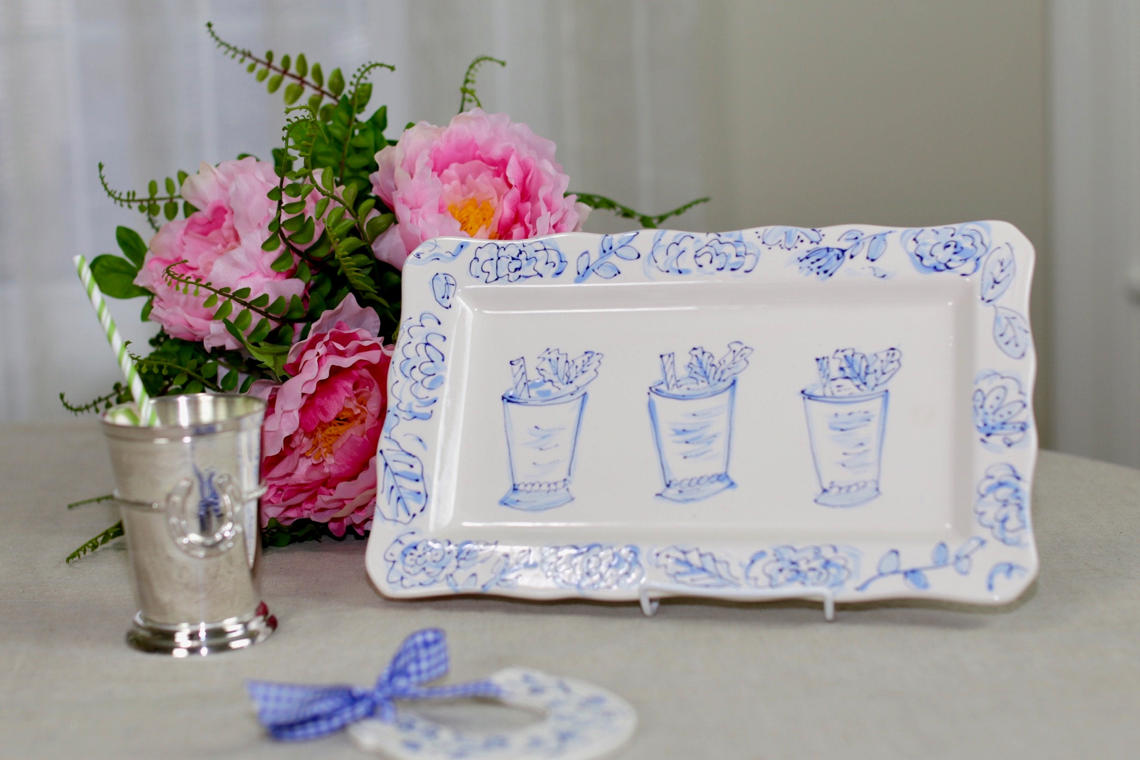 For the love of Mint Juleps. My Win, Place and Show, Mint Julep platter is a tribute to the first Saturday in May. This rectangle ruffle platter is great for serving side dishes or on display.