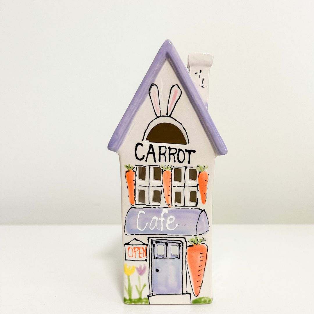 This Easter themed village lantern is called the Carrot Cafe and is a perfect addition to your Easter decor this year! Mix and match this with our other holiday home lanterns and create your own holiday village!