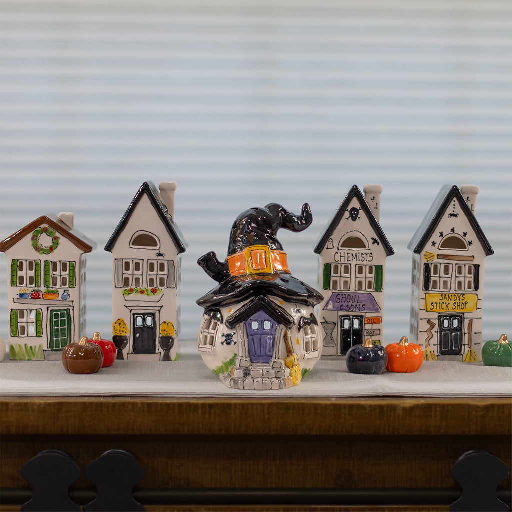 This witch house lantern is a Halloween must-have! Mix and match this with our other holiday home lanterns and create your own holiday village!