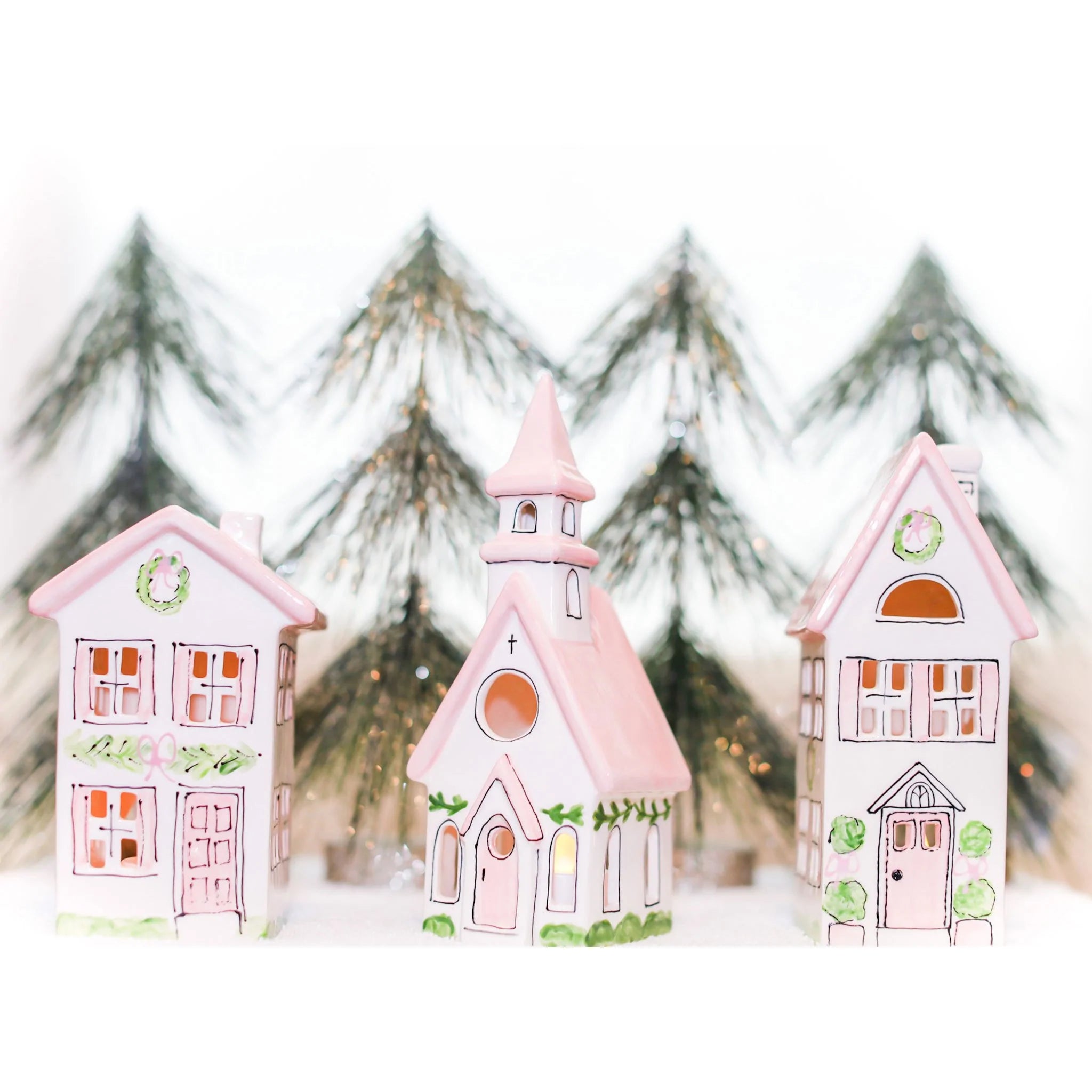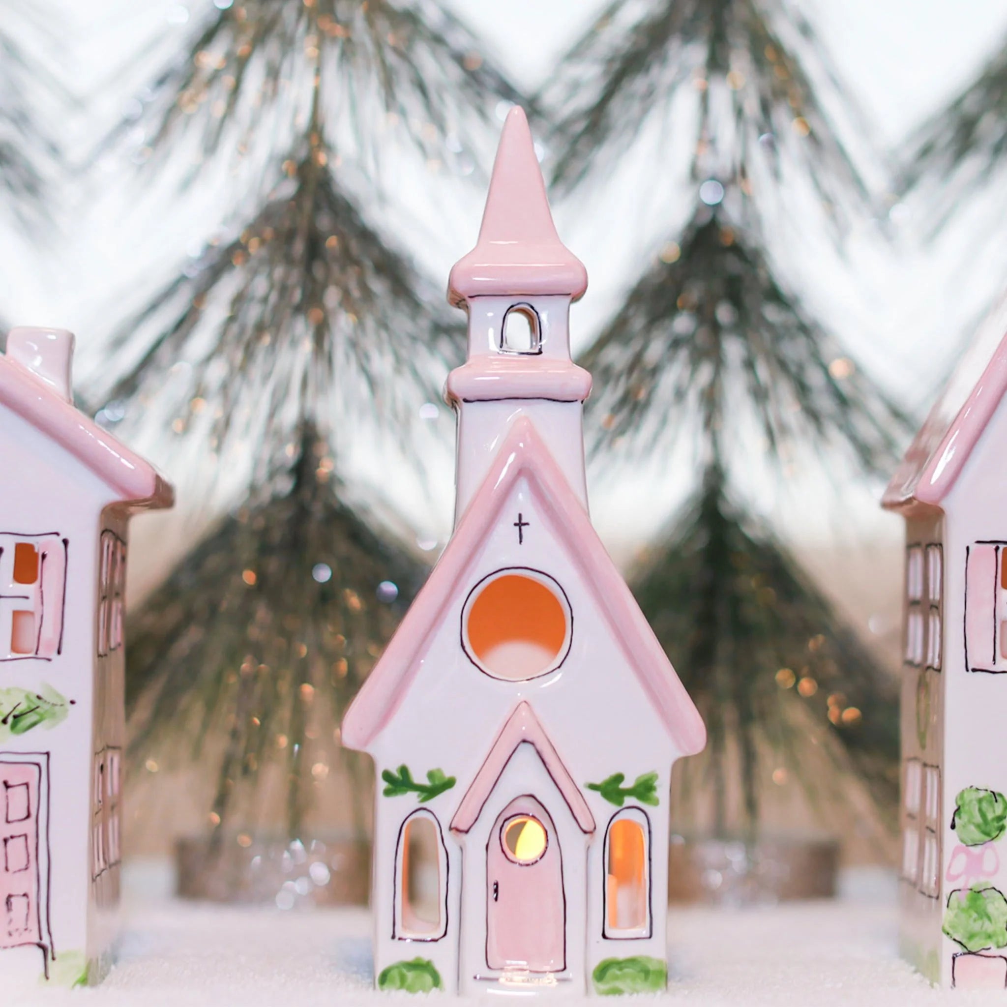 Hand painted in a classic style, this Christmas church lantern will be a keepsake for many years to come. Painted in black or pink, you can create your own cozy village by adding in our other village Christmas houses to your order! Drop in a tea light and watch them glow from the inside.