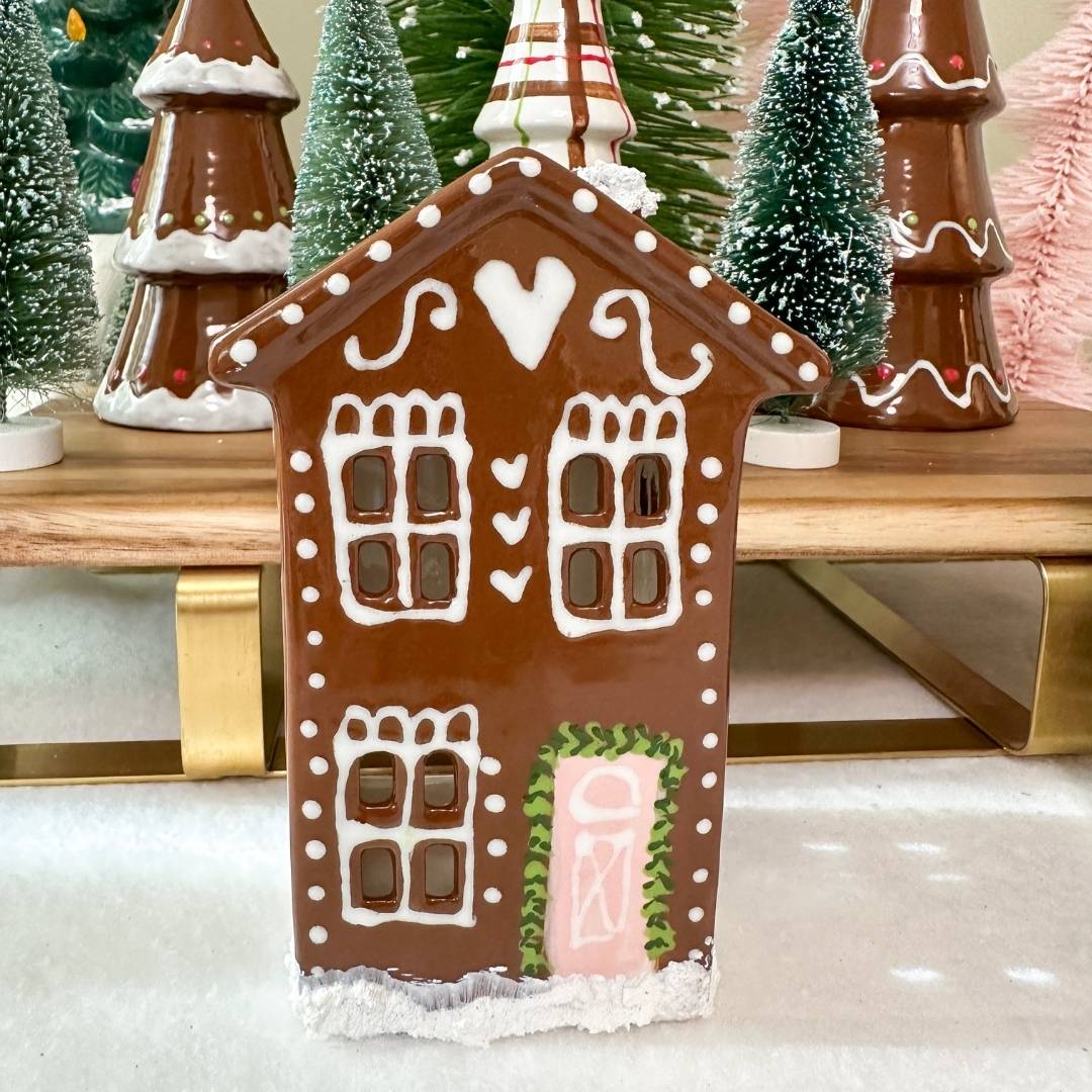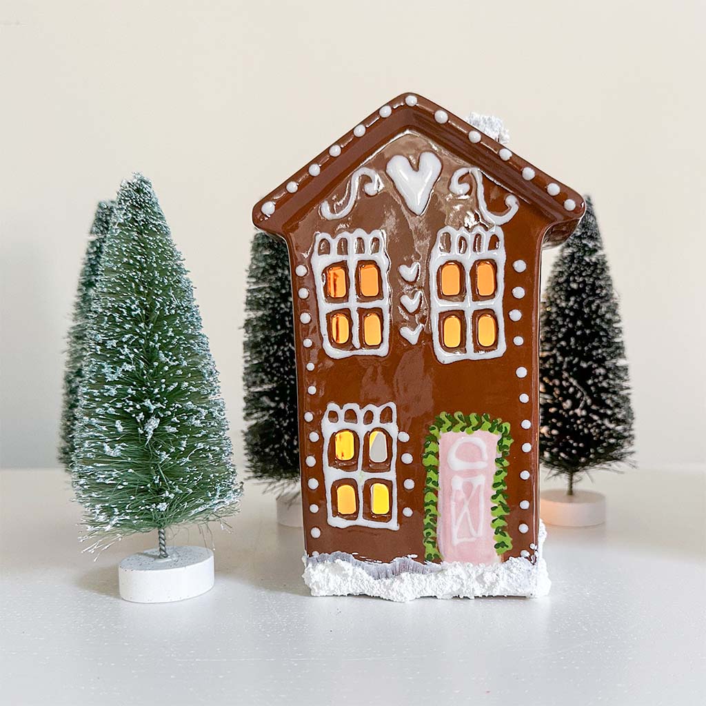 Experience the holiday spirit with our charming Short Gingerbread House Lantern. Hand painted in a traditional gingerbread style, this lantern is sure to become a treasured keepsake. Complete your Christmas village by pairing it with the tall Gingerbread Christmas house and the Gingerbread House church. Simply add a tea light and enjoy the warm glow from within.