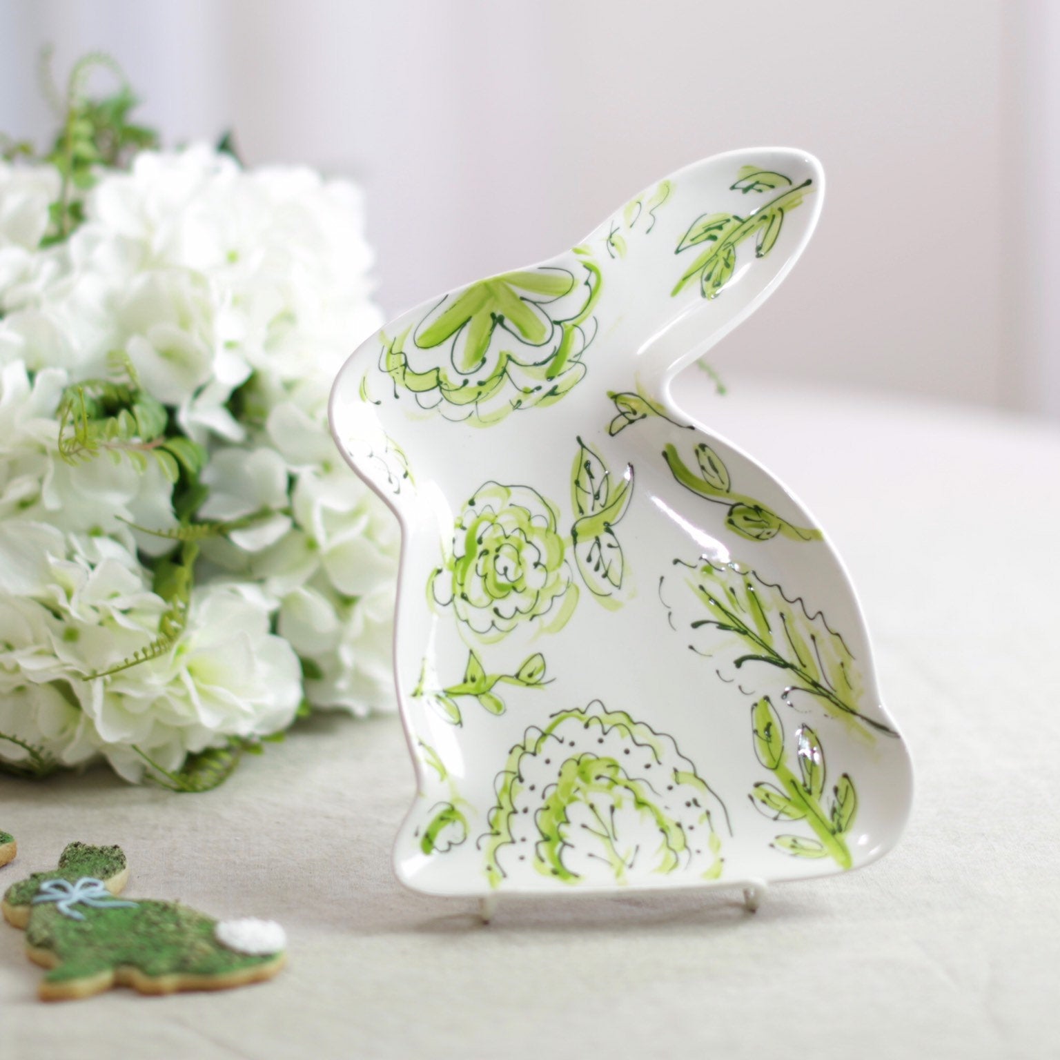 Dress up your table this spring with my hand painted, ceramic Easter bunny dish. Painted in an assortment of colors, in a timeless pattern that will instantly be your favorite piece.