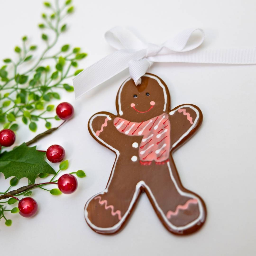 This adorable gingerbread man ornament is hand painted on ceramic and makes a great gift!