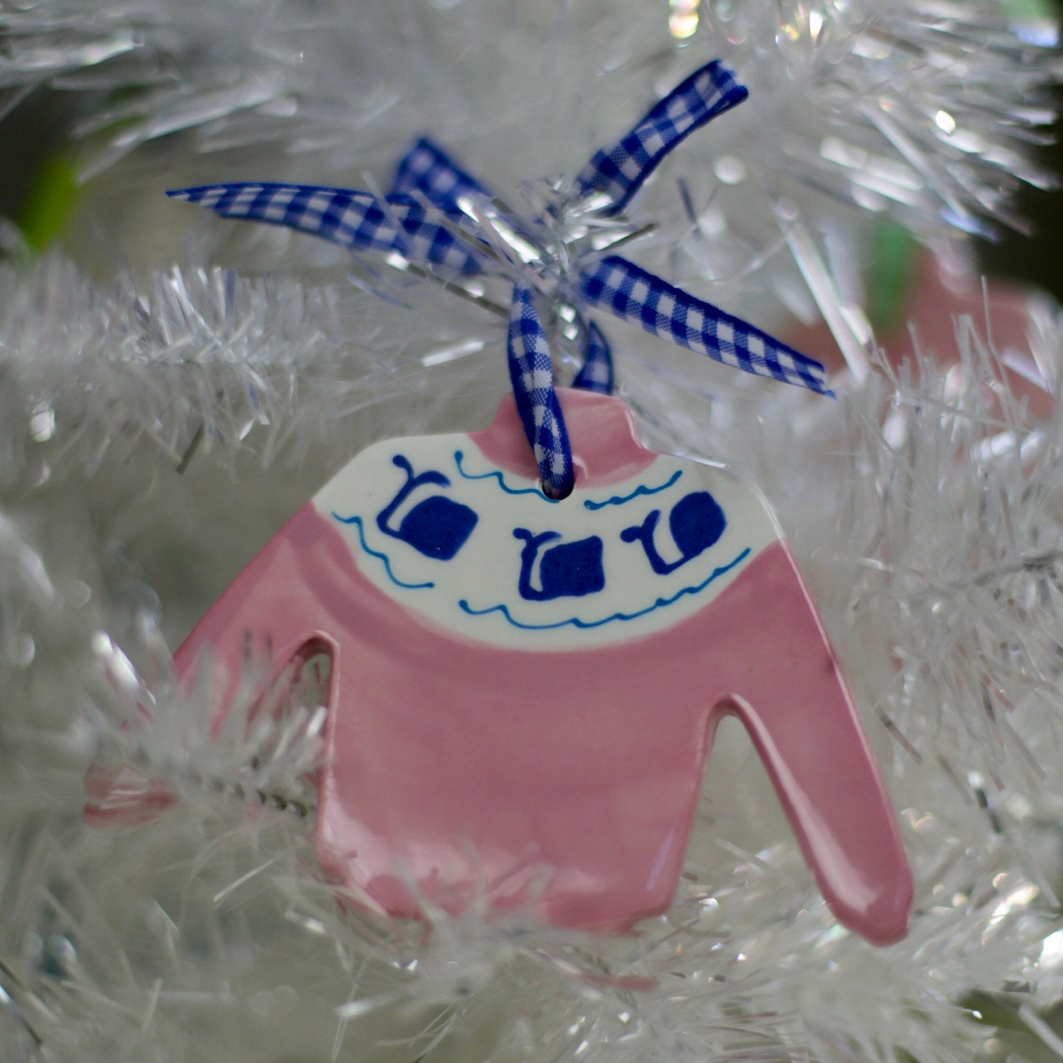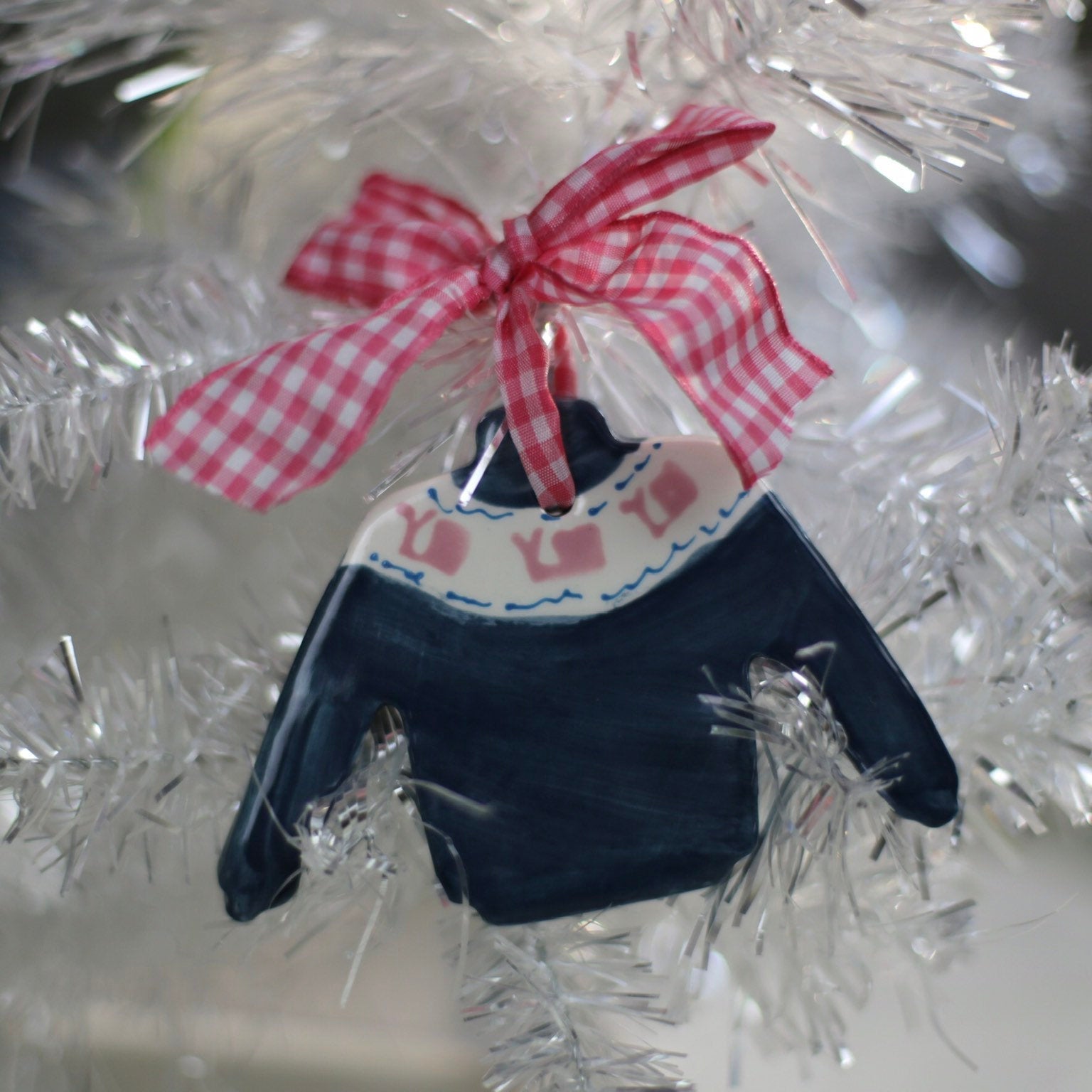 Well the 1980’s called and I have answered. Throwing it back to the days of classic prep, I’ve designed a preppy sweater ornament. Aren’t they adorable??? I had the green one with the whales. 💙💚.