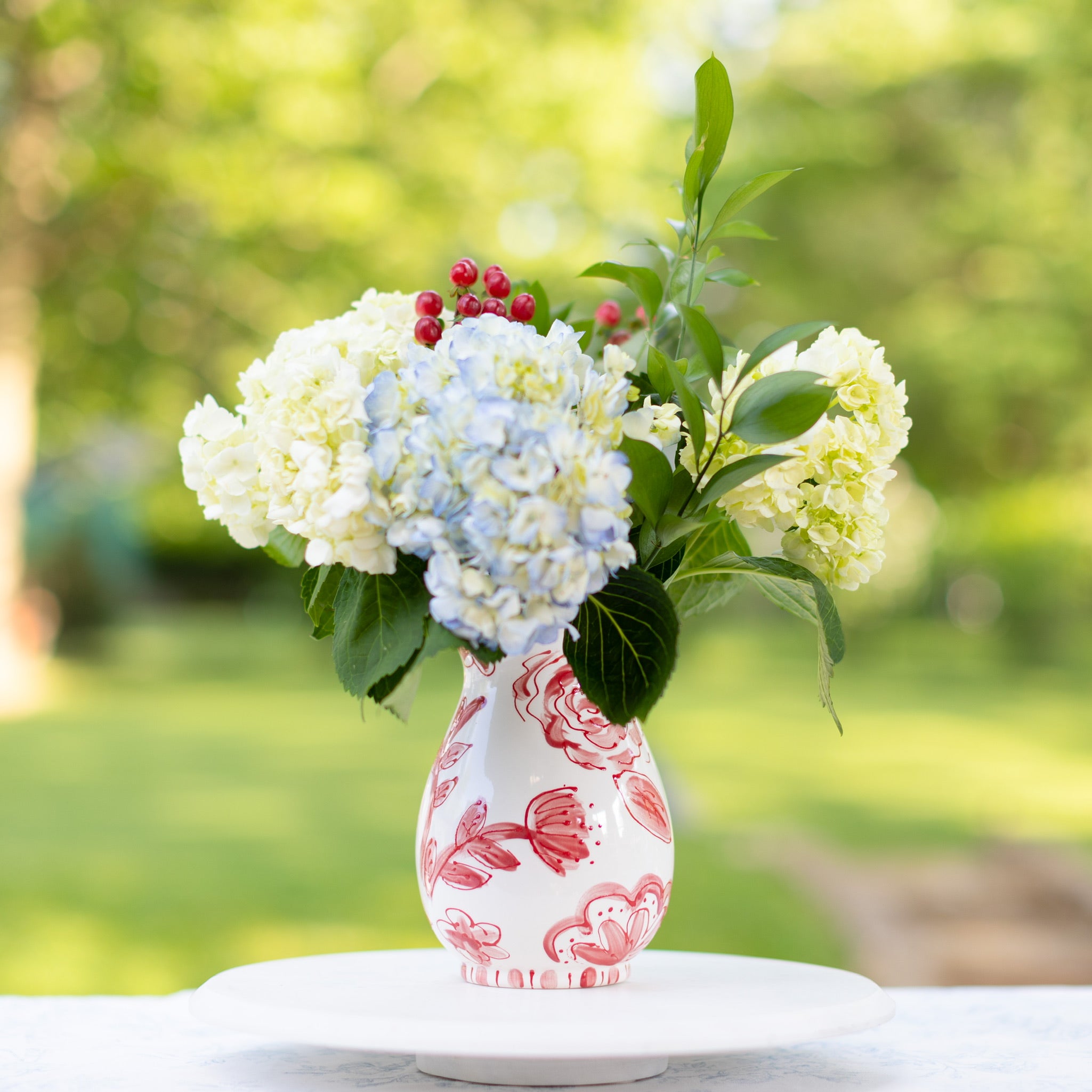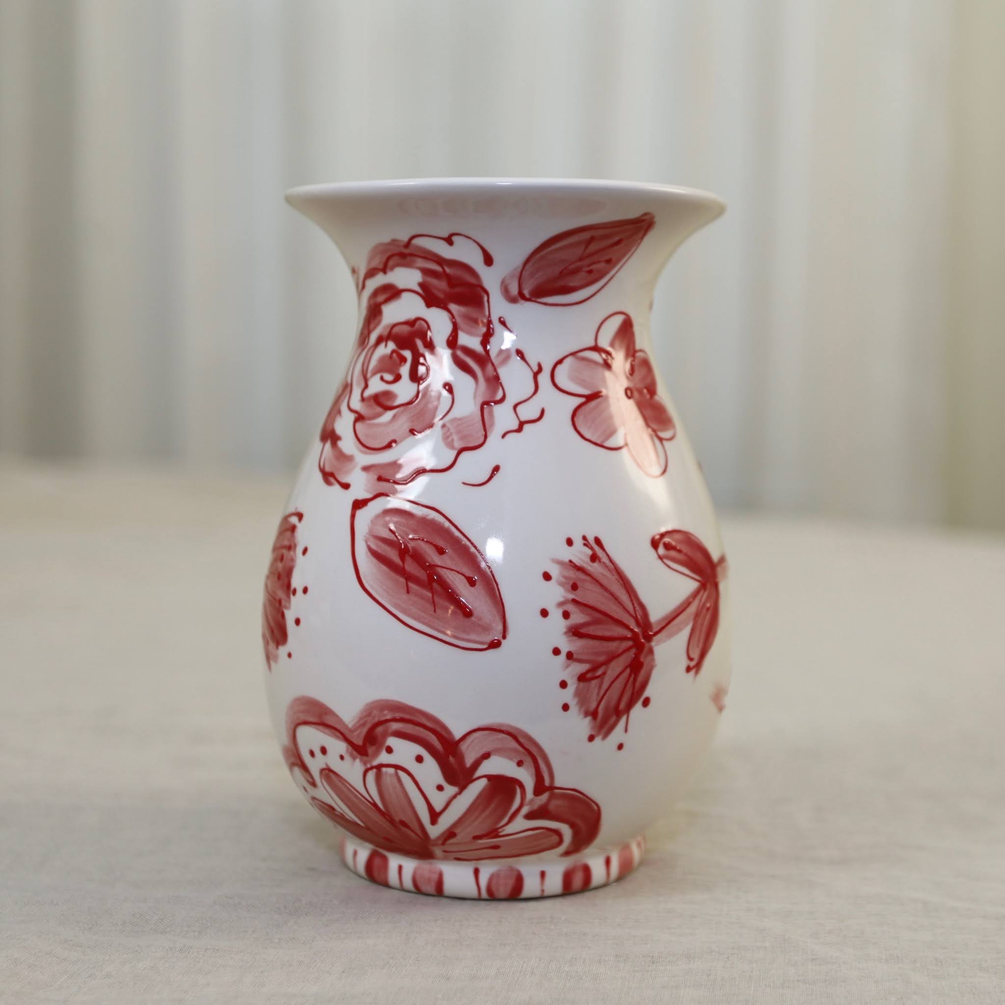 Hand painted, red and white floral ceramic vase. This one of a kind vase is sure to be a show stopper whenever you decide to display it.