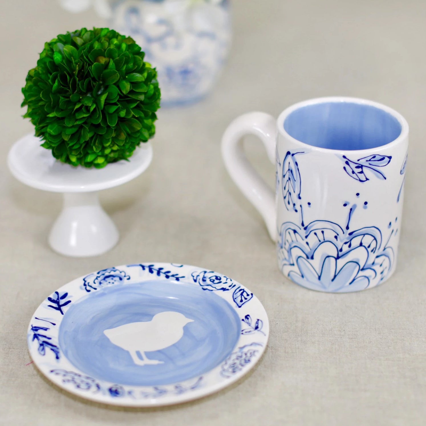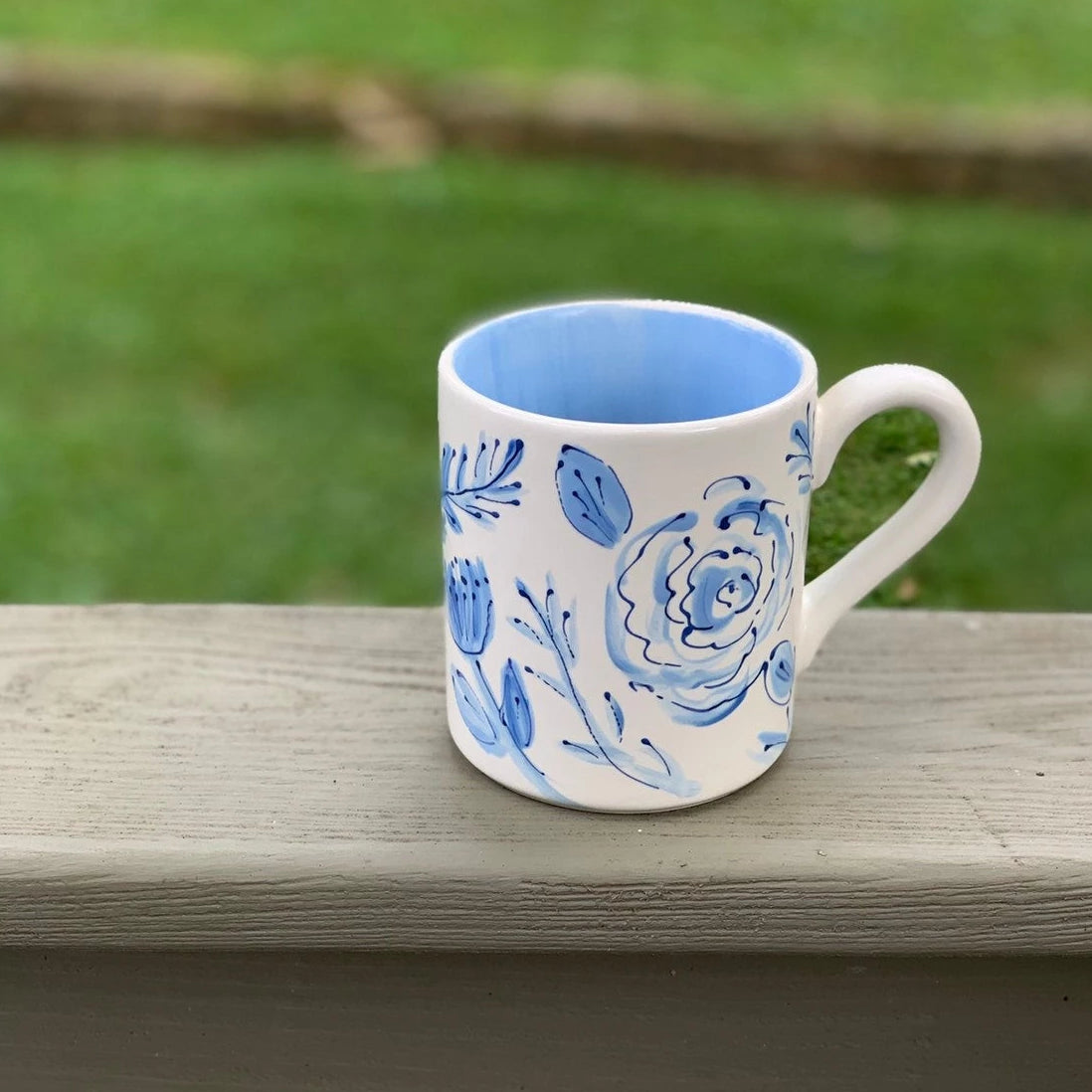 Beautifully hand painted in my modern floral pattern. This mug brings all smiles in its classic blue and white colors. Perfect for coffee, tea, pencils and more. This pattern also coordinates with all of my blue and white pieces and looks beautiful as an accent with everything from your grandmothers China to that new item you just picked up.