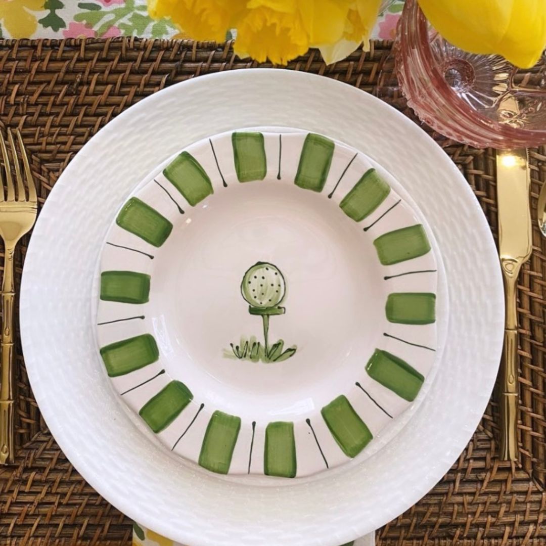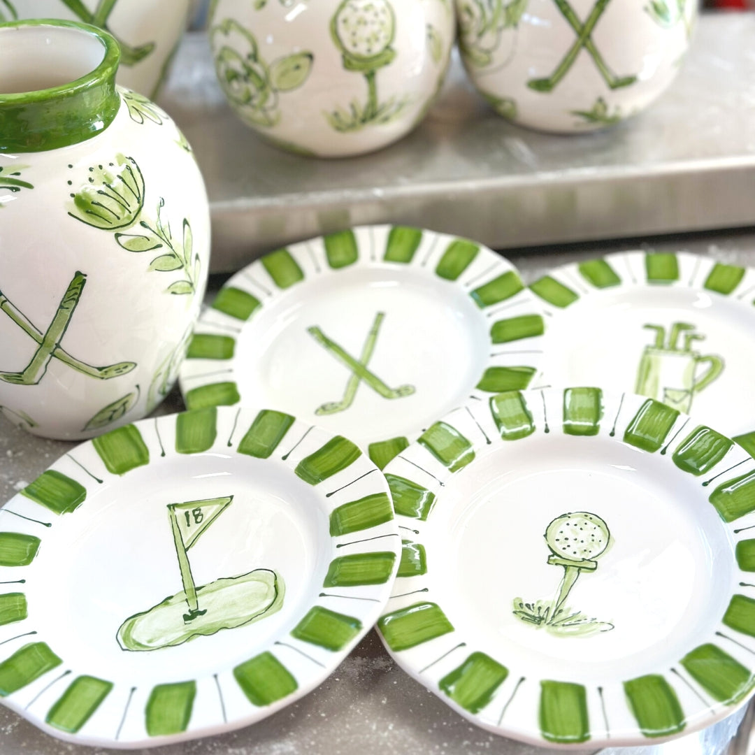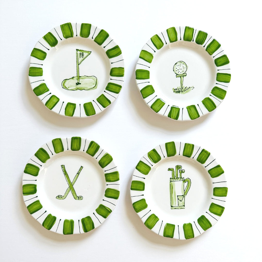 Enjoy a golf themed dining experience with this set of four ceramic plates. Hand-painted with a golf-themed design, these plates will bring a special touch to your next dinner party. With their vibrant colors, you'll feel like you're on the green, even when you're at the dinner table.