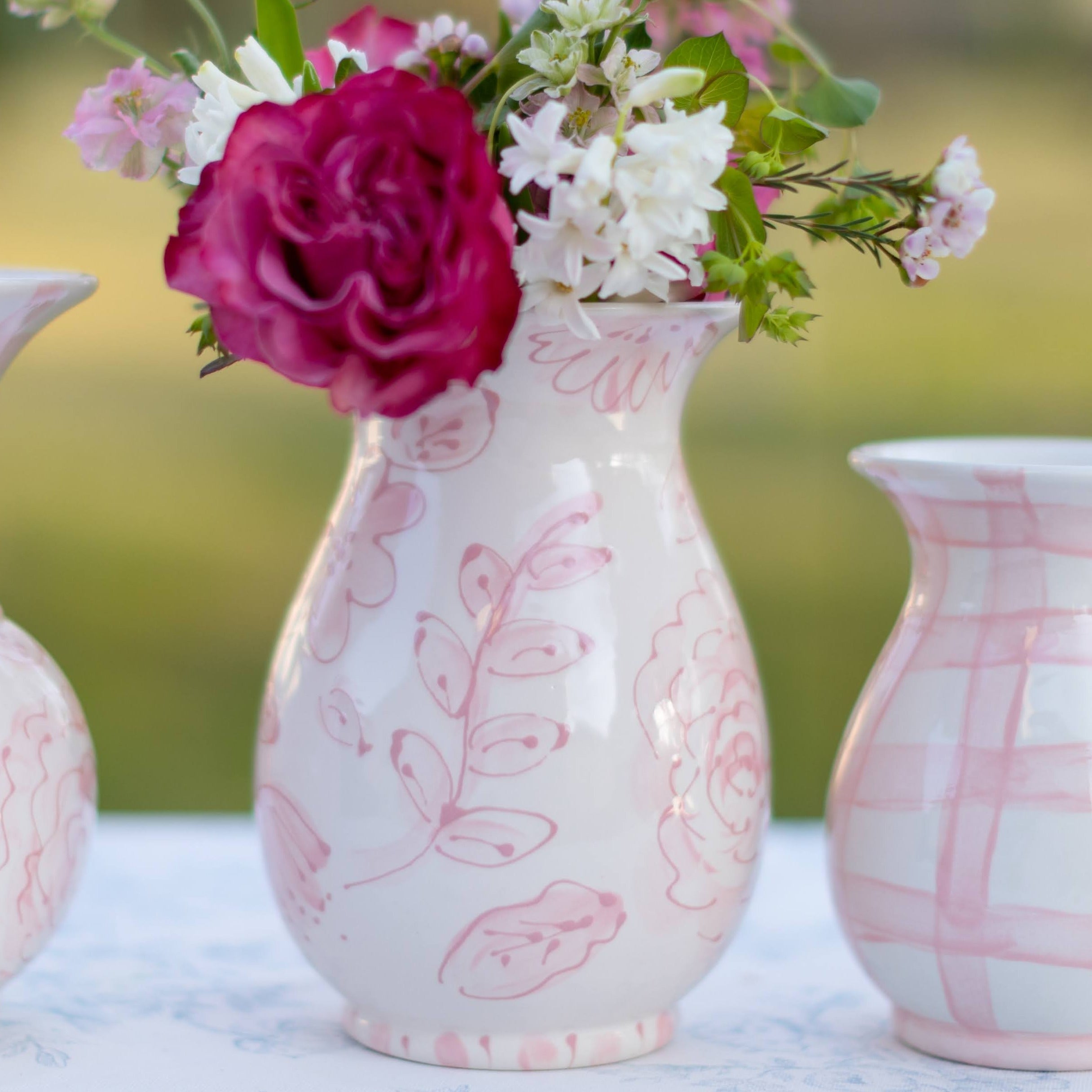 Hand painted, pink and white floral pattern ceramic vase. This one-of-a-kind vase is sure to be a show stopper whenever you decide to display it.