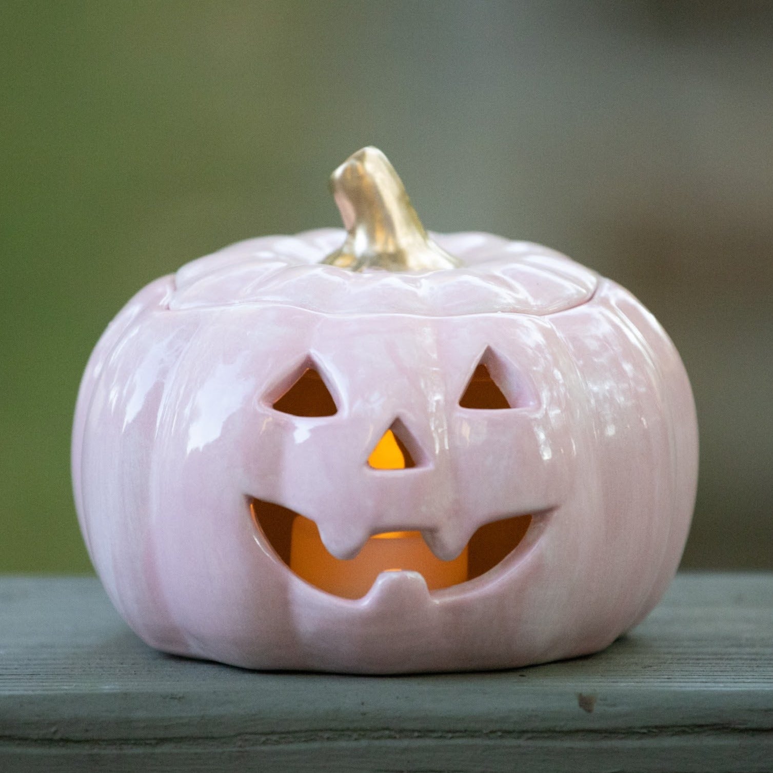 Add a spooky glow to your tablescape or mantel with this darling pumpkin jar. Add a battery powered tea light to light it up.