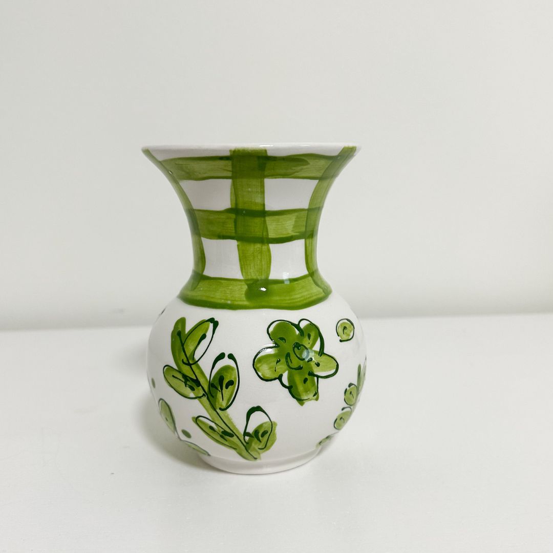 Hand painted, green and white modern floral ceramic vase. This one-of-a-kind vase is sure to be a show stopper whenever you decide to display it.