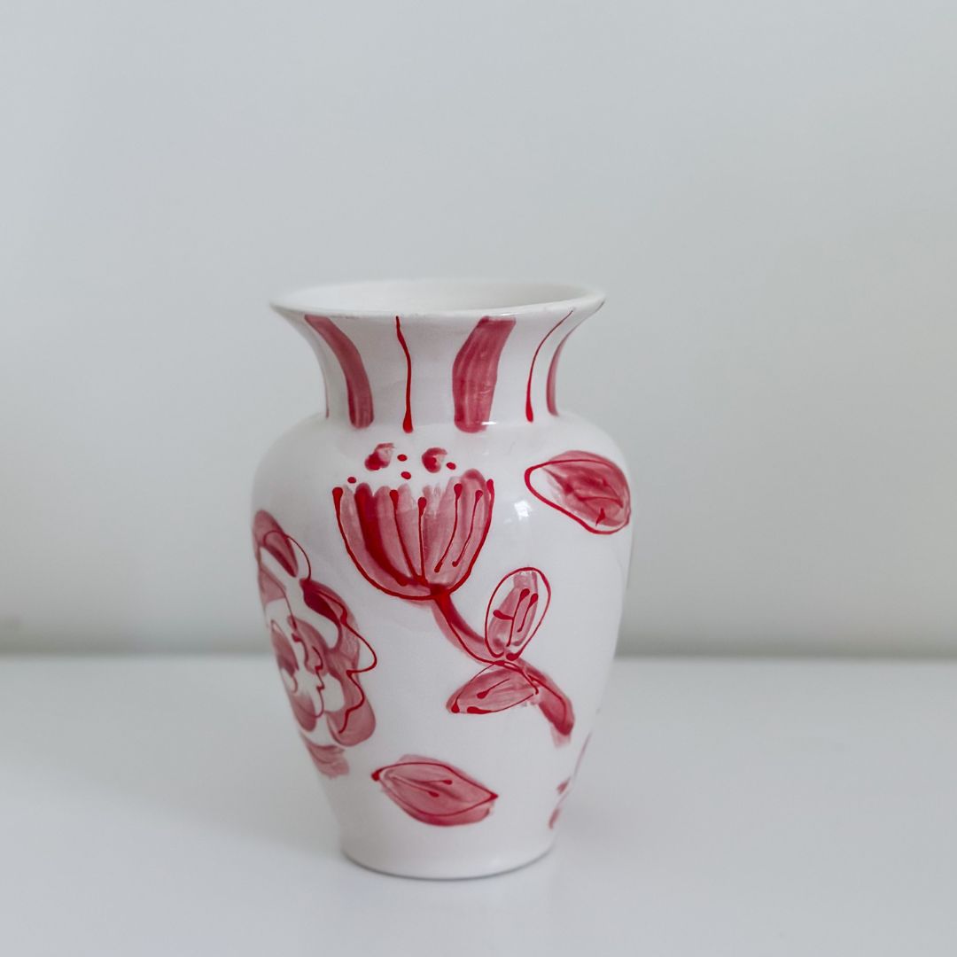 Add a touch of beauty to your space with this ceramic vase. Its red and white hand-painted finish boasts a lovely tulip design, making it an instant favorite.