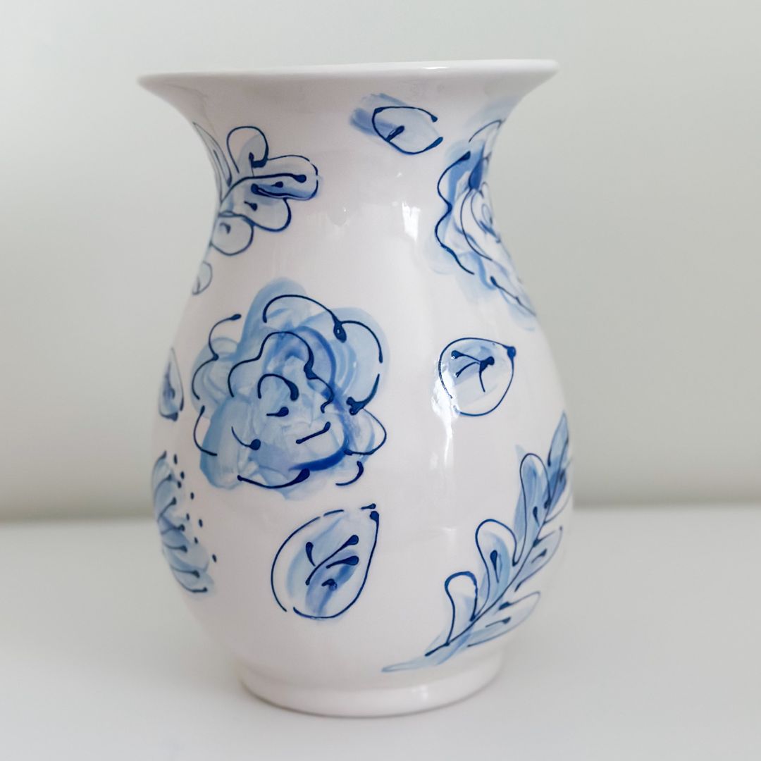 This beautiful ceramic vase features our signature blue and white floral design, hand-painted with care. It's sure to catch your eye and make a statement wherever it's placed.