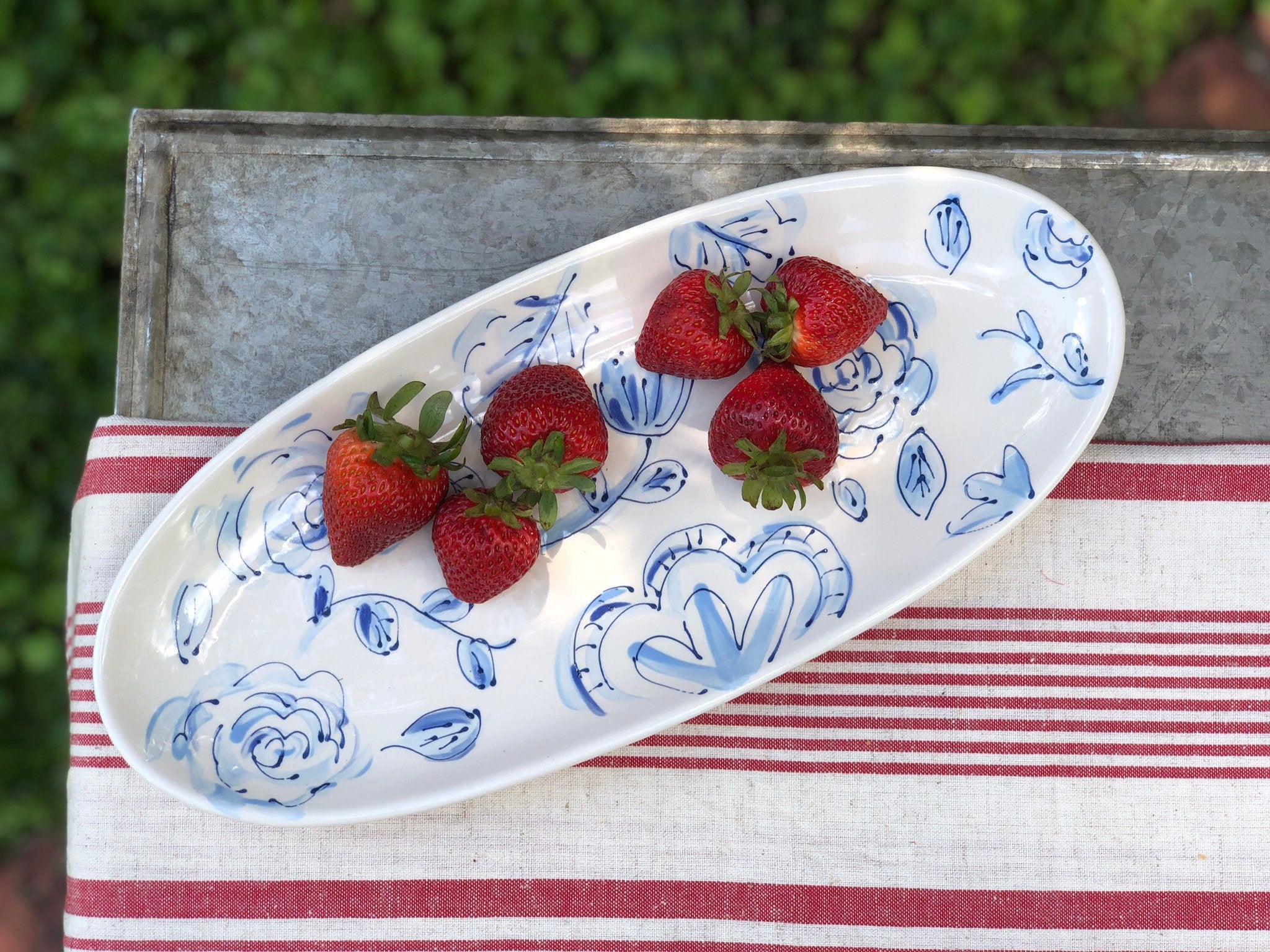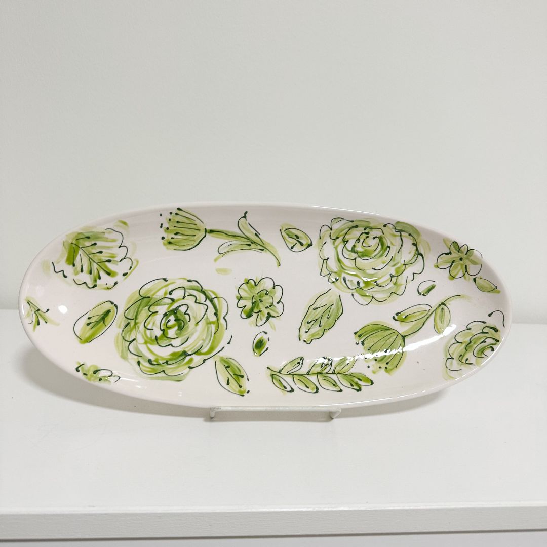 Set your table and decorate your home with this beautiful, hand painted, bespoke oval platter. Pairs well with everything from your Grandmother's China to that piece you picked up at TJ Maxx. Hand painted to order, you will enjoy this platter for years to come!
