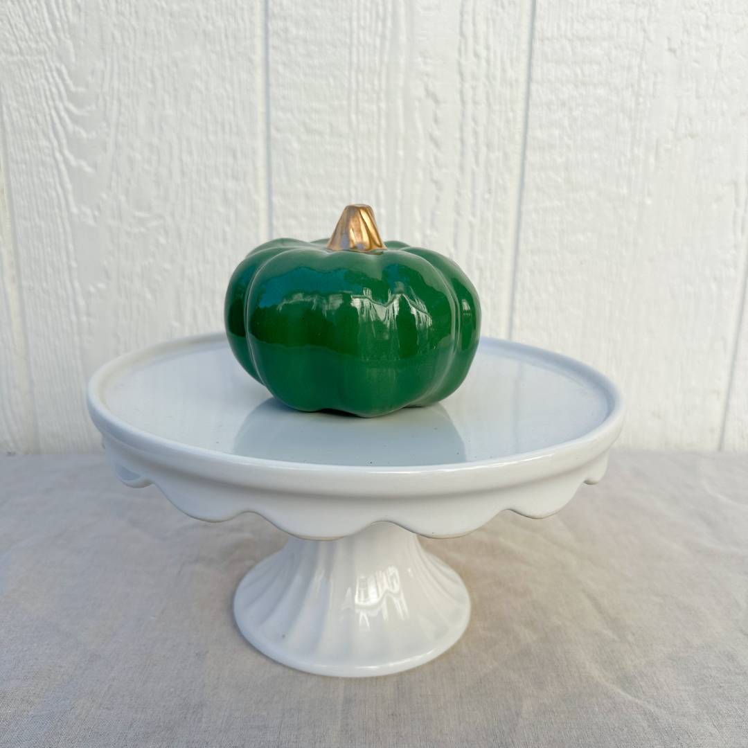 A medium pumpkin painted in a gorgeous dark green complete with a gold top!