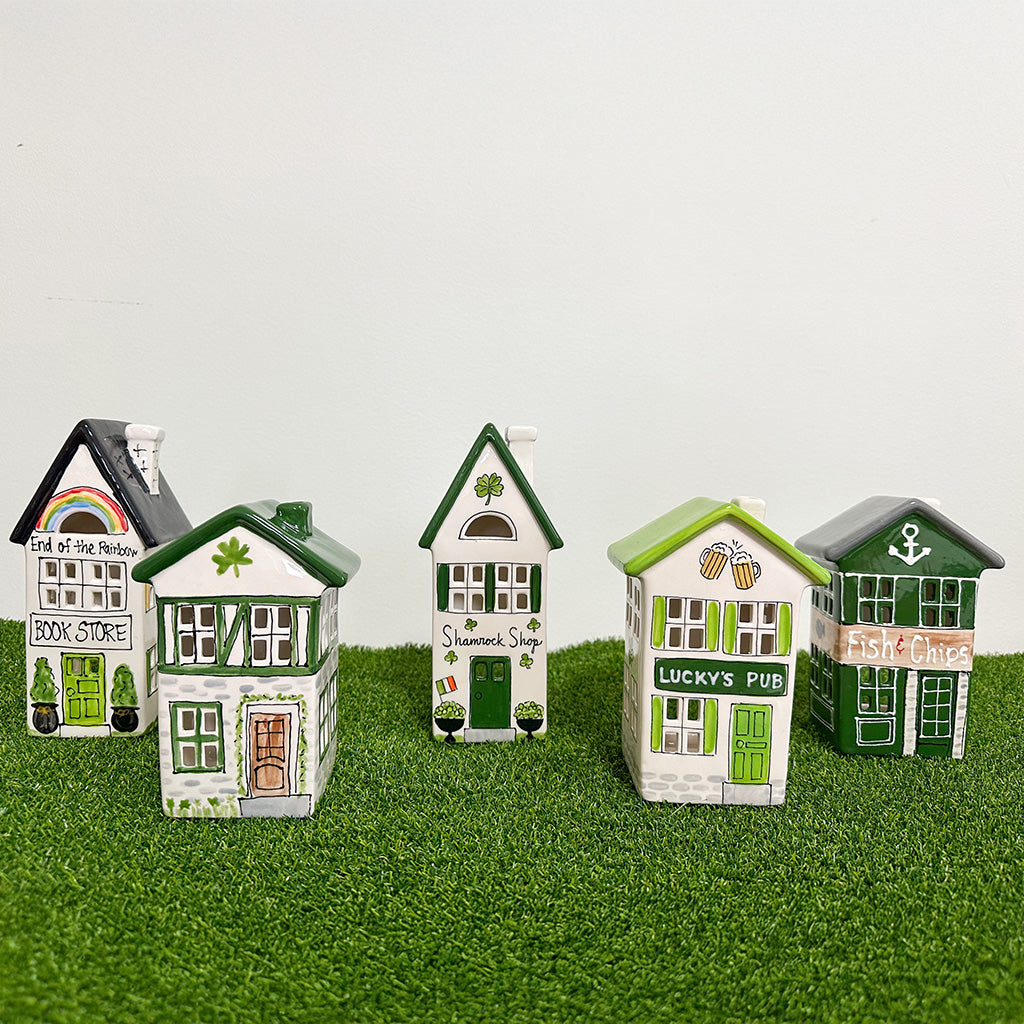 This Irish themed village lantern makes a perfect addition to your holiday village home collection! Mix and match this with our other holiday home lanterns and create your own holiday village.