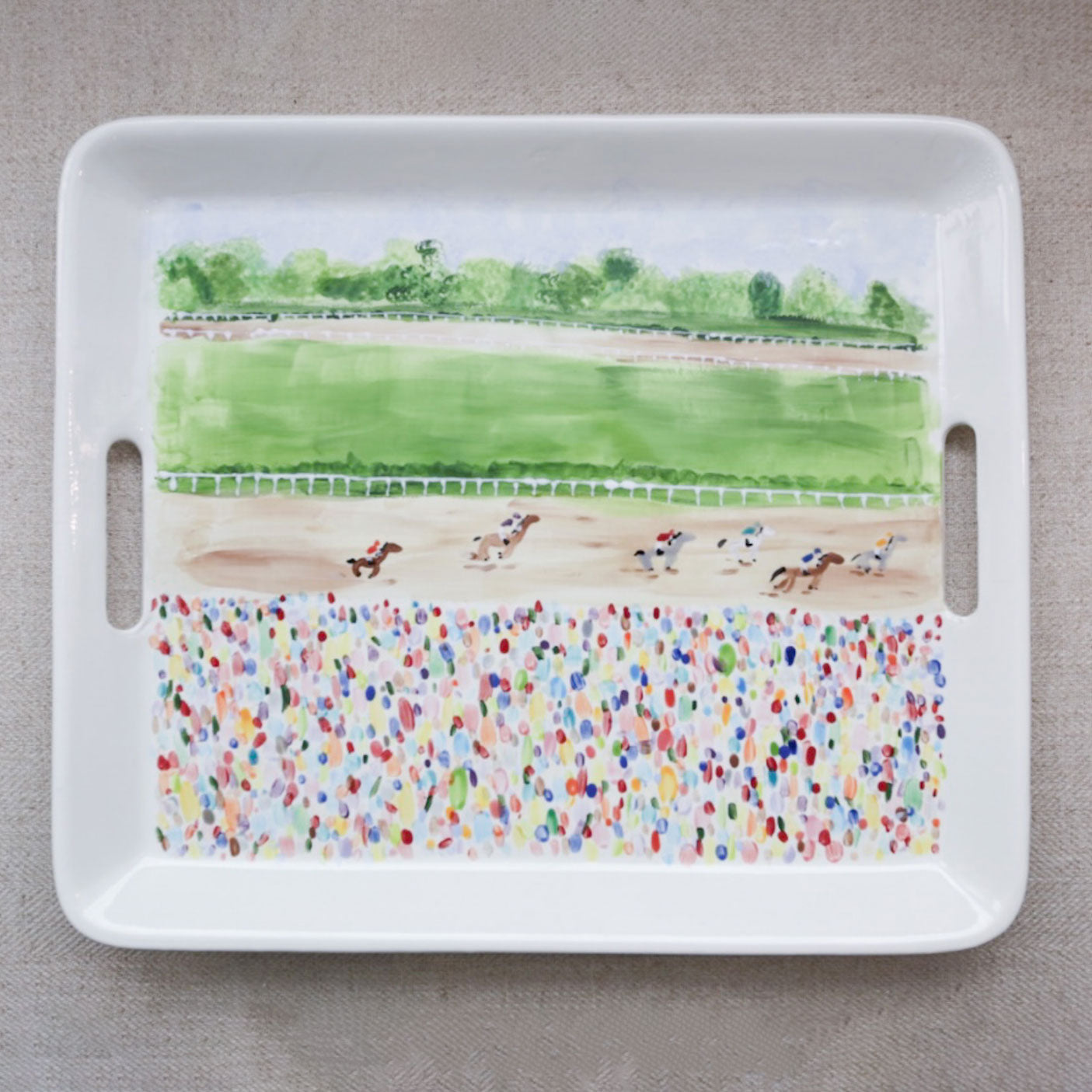 And they're off! This Derby themed tray has two handles and is perfect for serving or as a display piece on your table. It's a perfect way to celebrate the first Saturday in May!