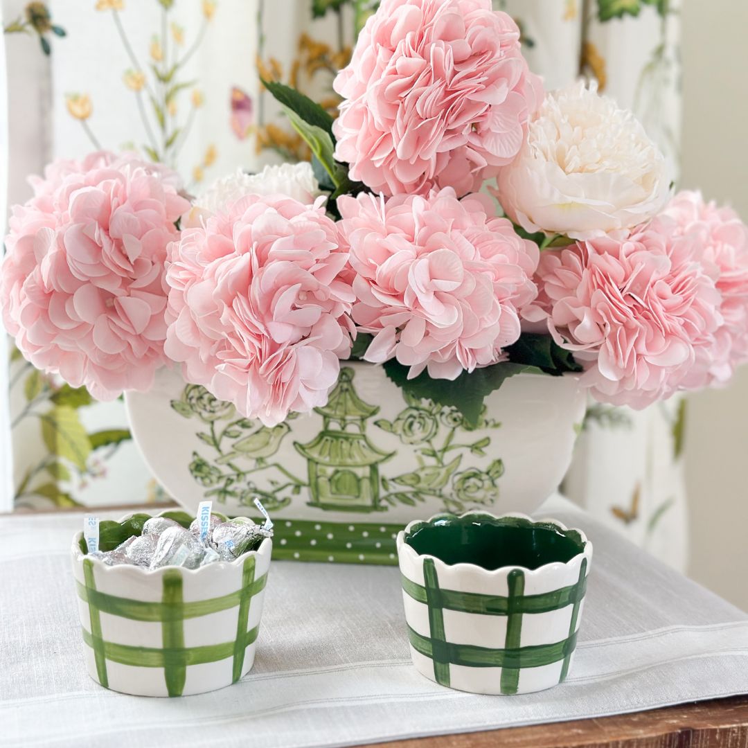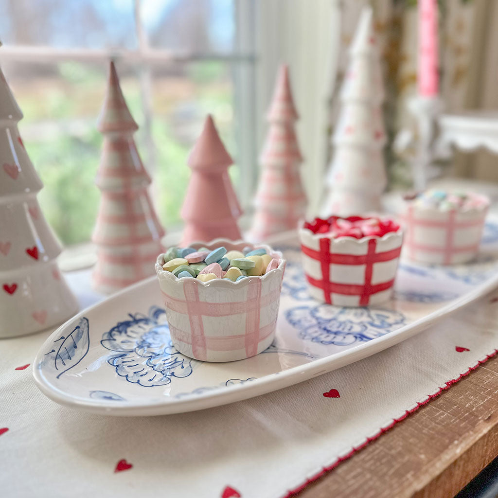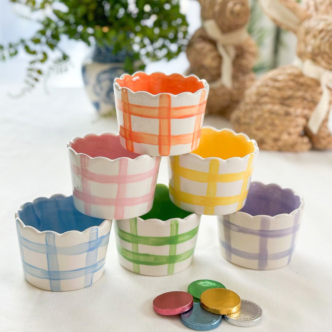 These scalloped gingham bowls are perfect for sprucing up your everyday dishes! They come in 8 vibrant colors and feature a scalloped top plus gingham on the outside and a solid color on the inside. Coordinate with our Mary Alice bowls for a cheerful setup or pair them with our large floral platter for a great presentation!