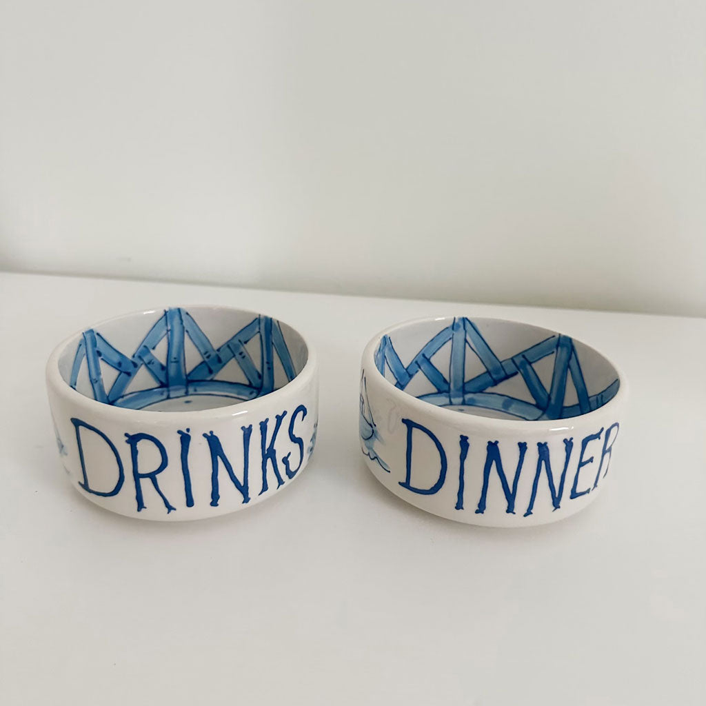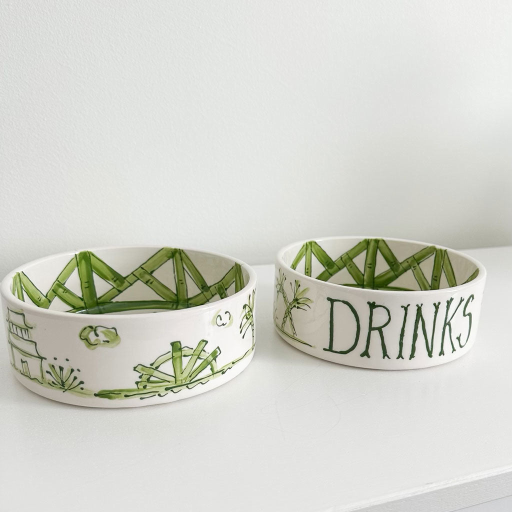 Available in four sizes, these dinner and drinks dog bowls makes their mealtime a little more elevated! Buy both to make a great set for your favorite pet. Pairs perfectly with our Chinoiserie Dog Treat Jar