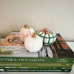 This impressive 12-inch vase, hand painted with our blue Halloween toile design, will add a charming touch to your Halloween event. It looks wonderful filled with flowers or displayed alone.
