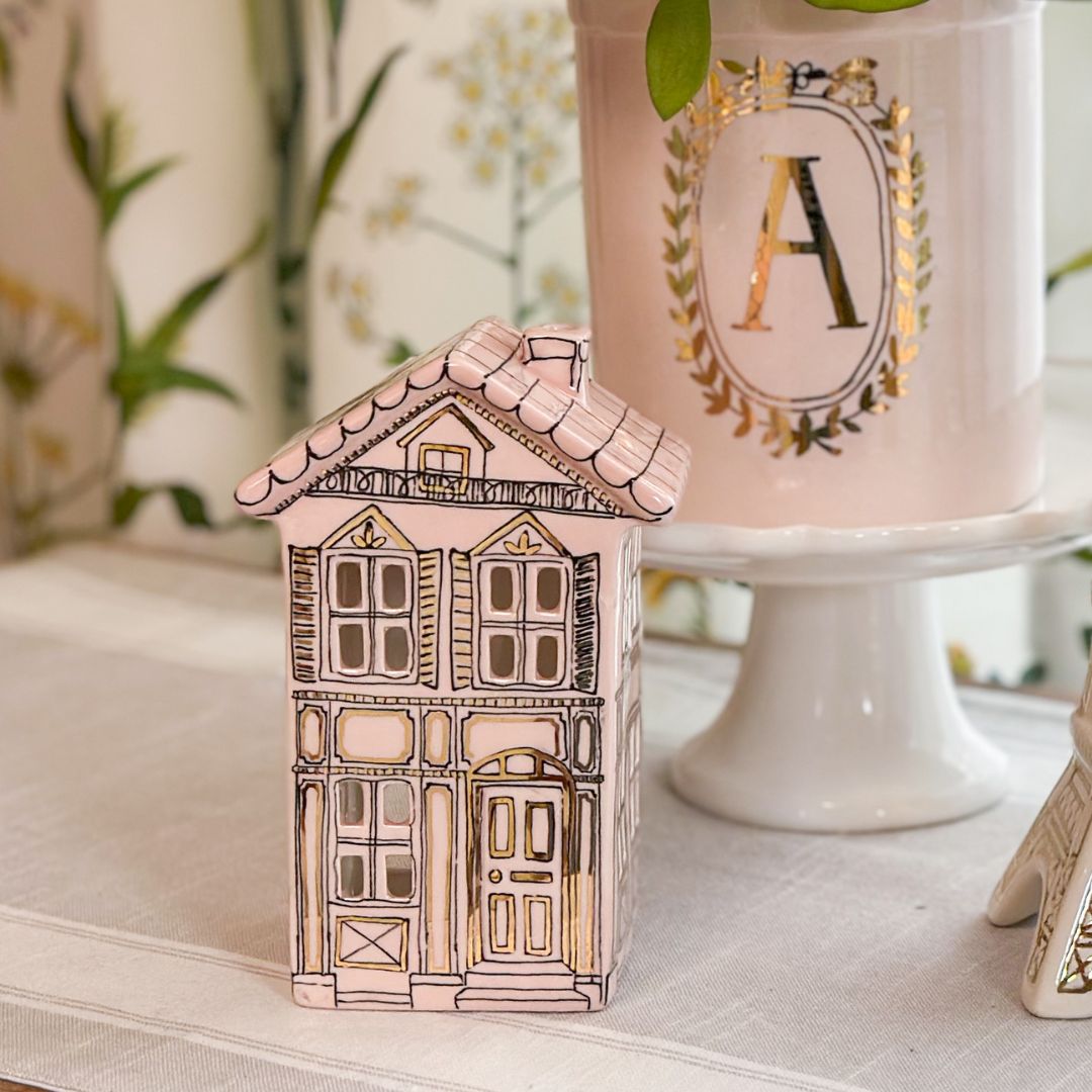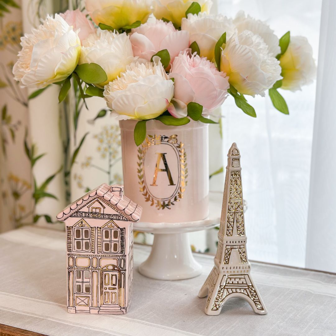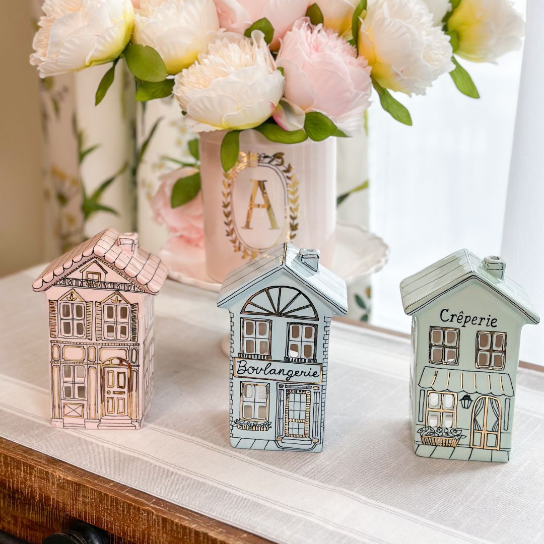 This Pink Parisian Village Lantern will elevate your village home collection with its stylish pink house and elegant 22 karat gold accents. Pair it with our Crêperie and Boulangerie village lanterns for the perfect Parisian village! Bring the charm of Paris to your home with this gorgeous lantern.